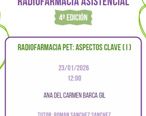 Curso de actualización en Radiofarmacia asistencial, 4ª edición: Radiofarmacia PET: aspectos clave (I) 23/01/2026, 12:00 Ana del Carmen Barca Gil, [...]